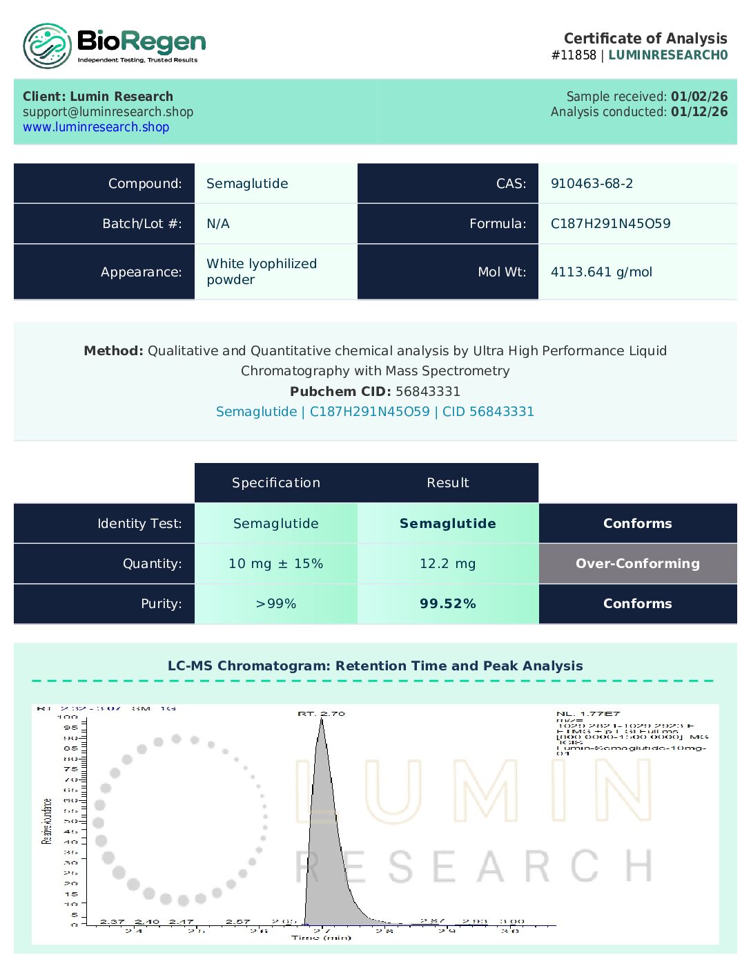 Yes. All Lumin Research peptides undergo independent third-party testing to verify purity, consistency, and quality. We provide certificates of analysis (COA’s) with each batch to complete transparency.